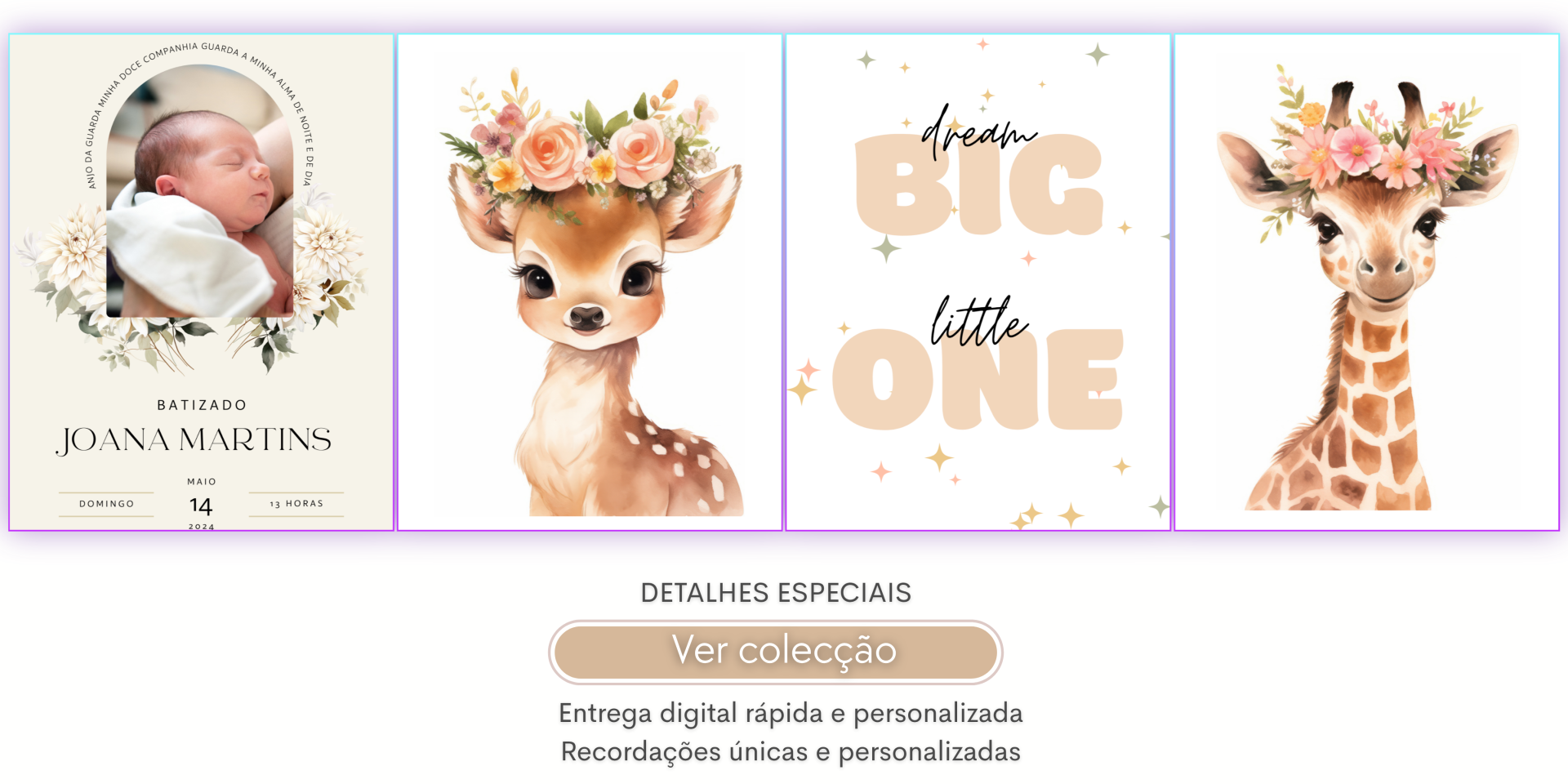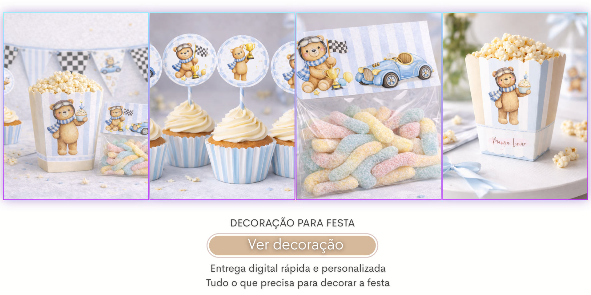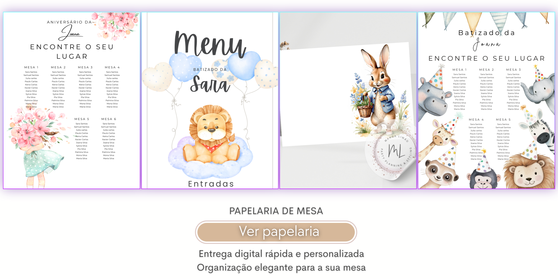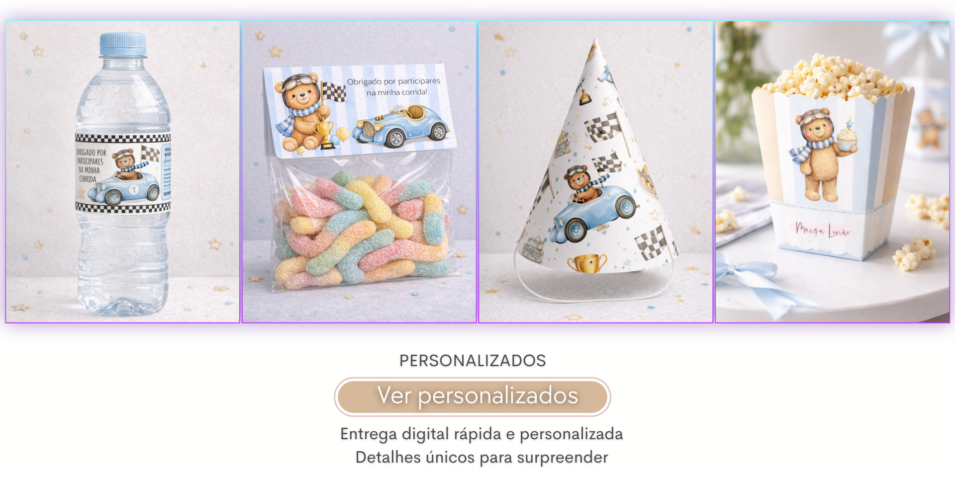 Desde convites digitais personalizados a decoração para imprimir, disponibilizamos uma coleção completa de produtos pensados para facilitar a organização da sua festa.