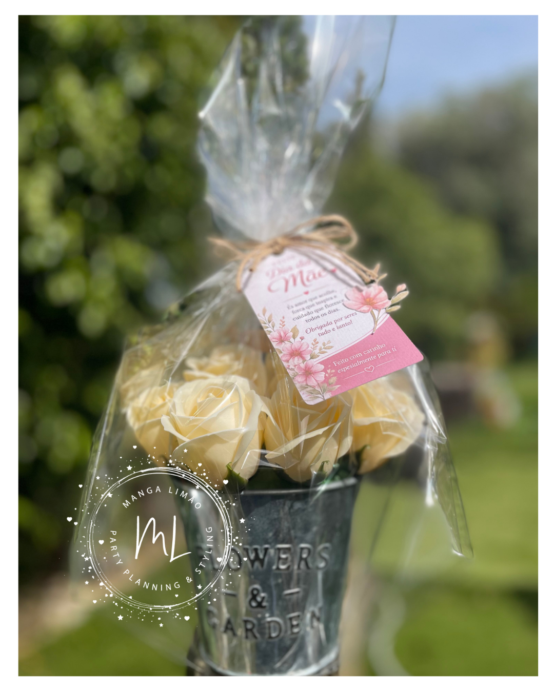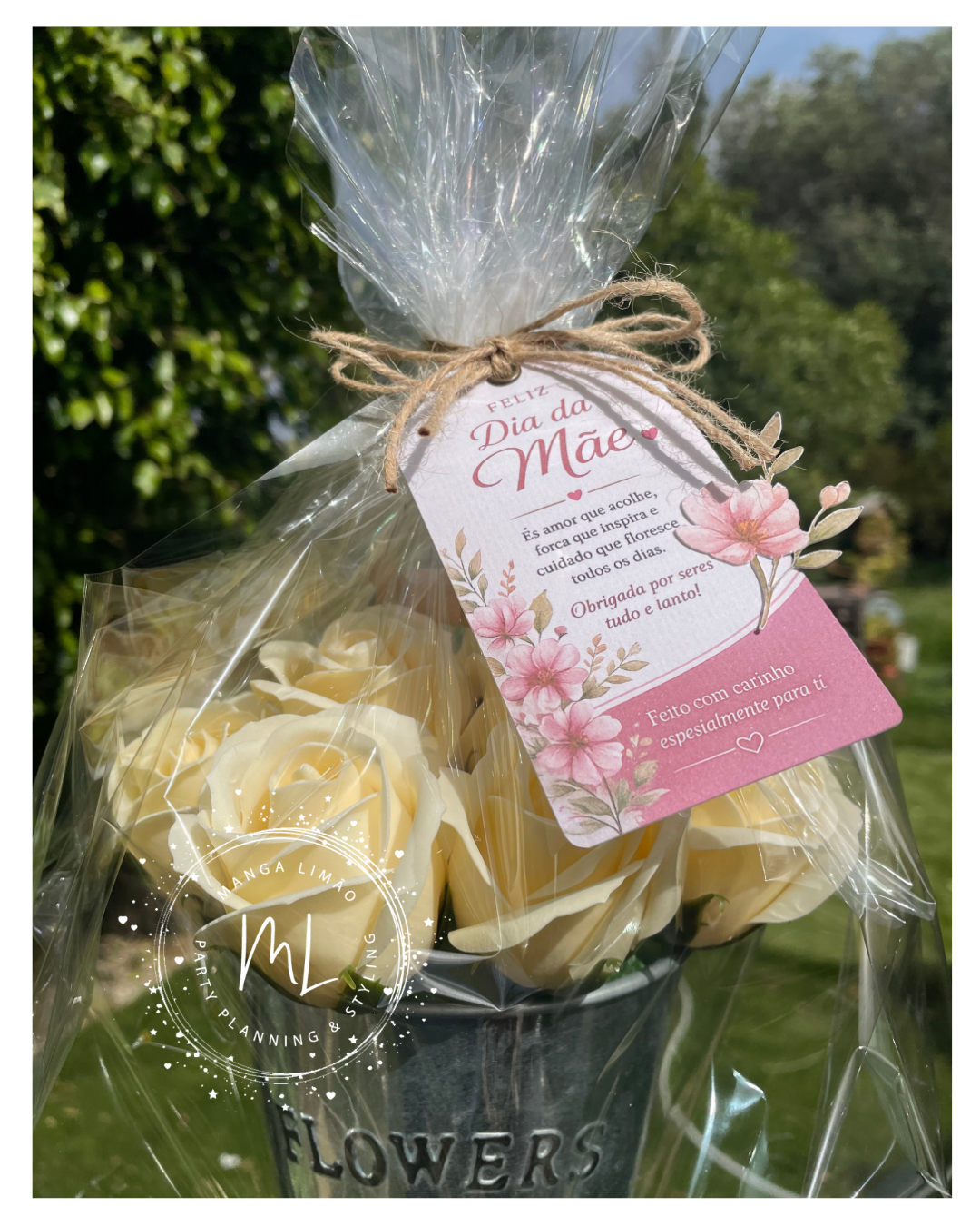 Arranjo de Rosas de Sabonete Dia da Mãe – Presente Perfumado com Tag Personalizada