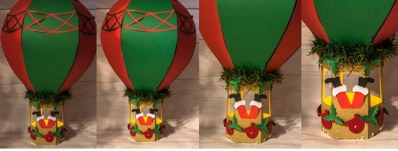 Feita em camadas de papel de 250 / 280 gramas, torna-se muito resistente. Decorada com motivos natalicíos incluindo o Pai Natal de Pernas para o ar !
