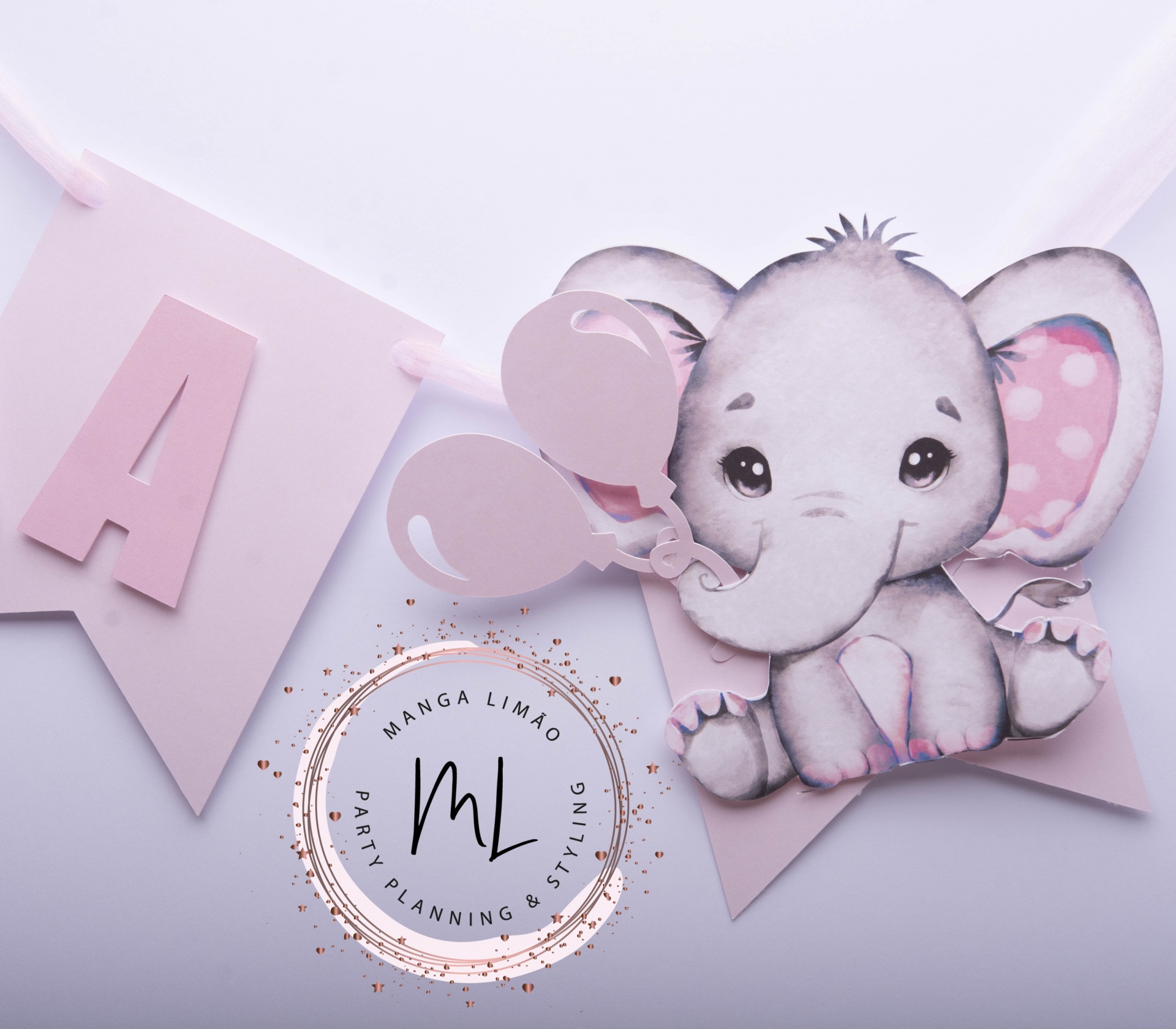 Bandeirola elefante com nome ou parabéns. Se optar pelo nome, não se esqueça de nos indicar qual o nome pretendido nas observações.