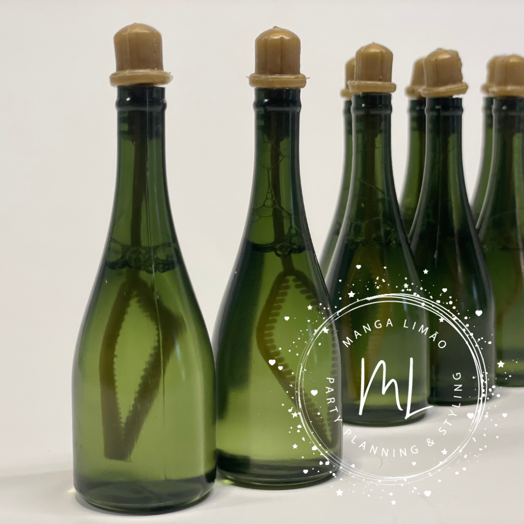 Cada garrafa mede cerca de 8 cm, ideal para personalização.