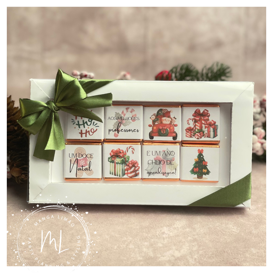 Cada caixa traz a mensagem especial: "Aos melhores professores, Um doce Natal e um ano cheio de aprendizagem". Ideal para oferecer um gesto de carinho e gratidão nesta época festiva.