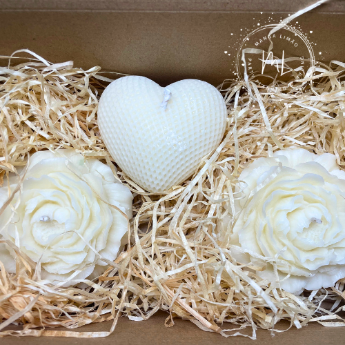 Descubra a nossa Caixa Oferta com 3 Velas Aromáticas em Edição Limitada, composta por 2 velas em forma de flor e 1 vela em forma de coração.