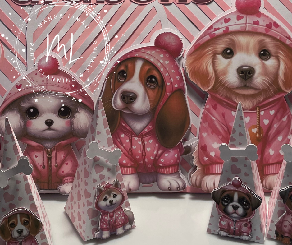 Pack de 8 caixas tema Cães Fofos de raças variadas