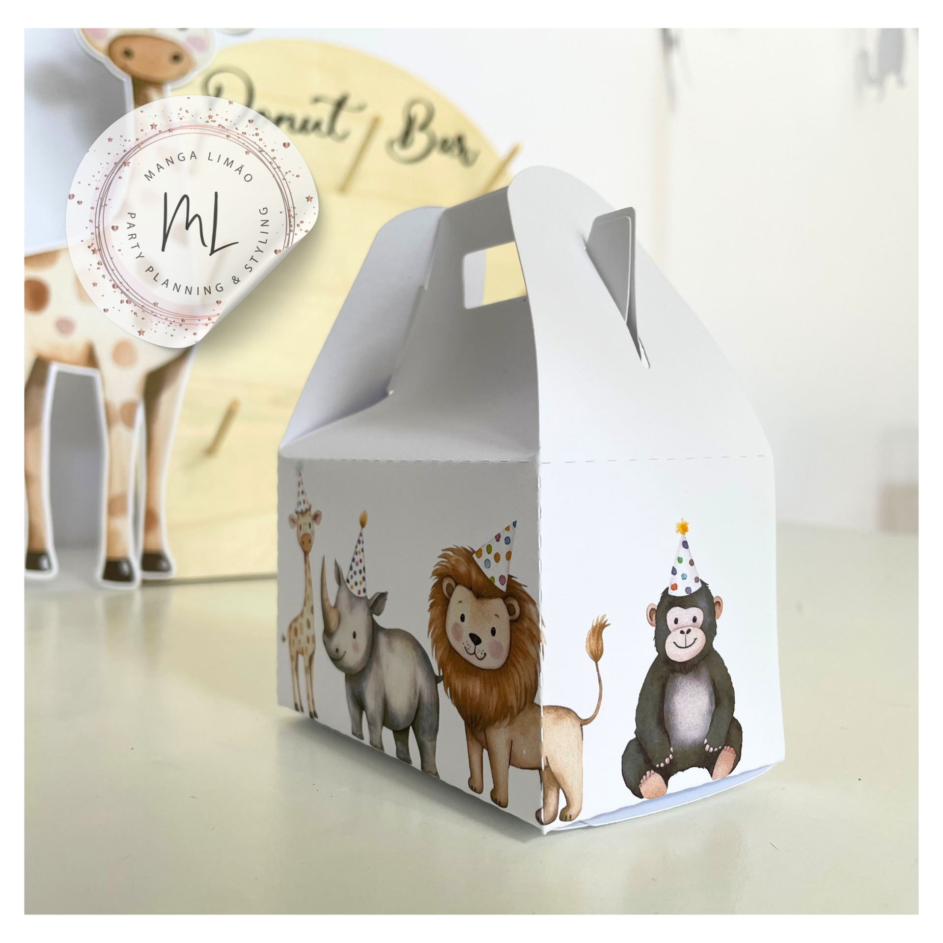 Este pack de caixas tipo lunch box é perfeito para festas com o tema Animais da Selva!