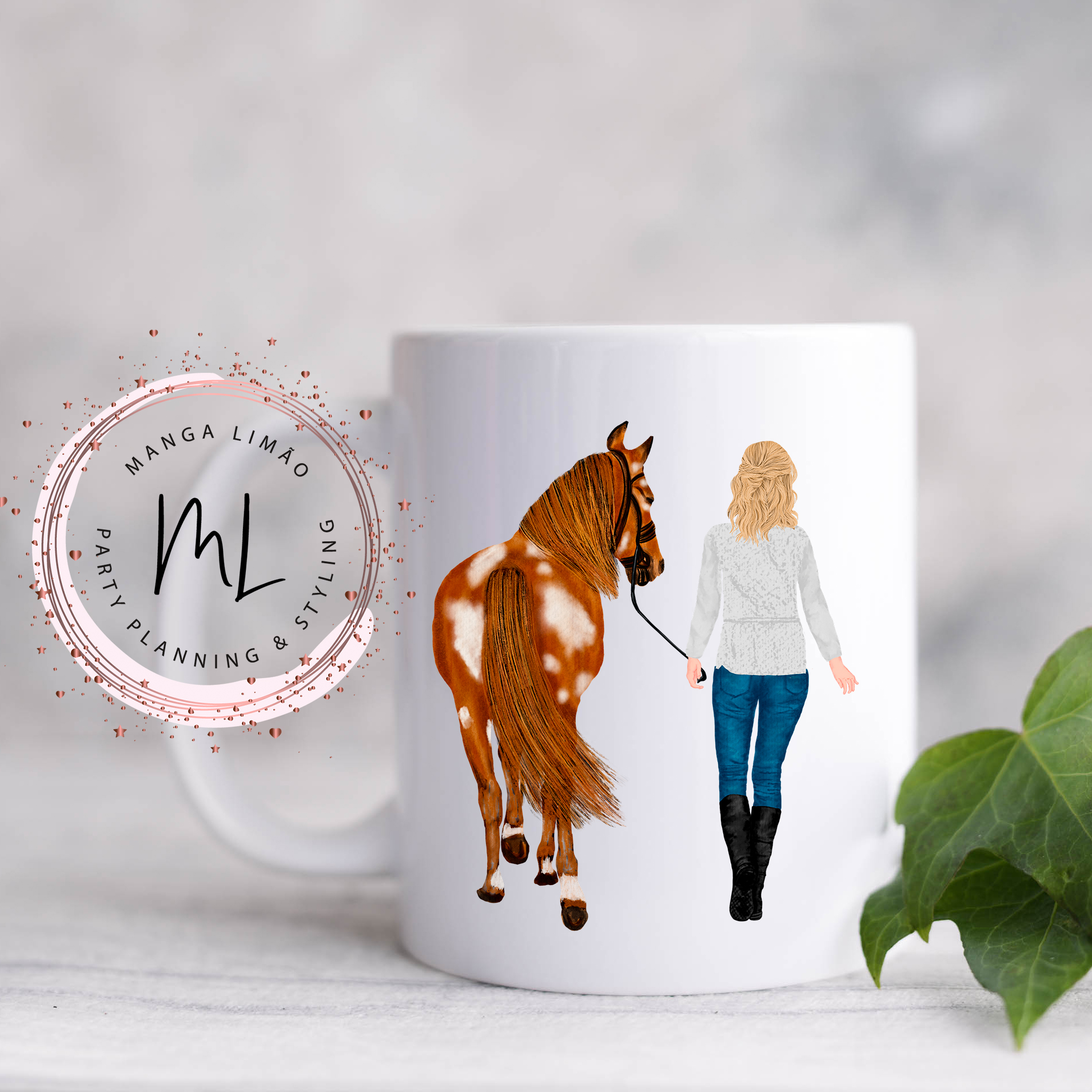 Escolha a cor do cavalo e a cor da roupa e cabelo da cavaleira.