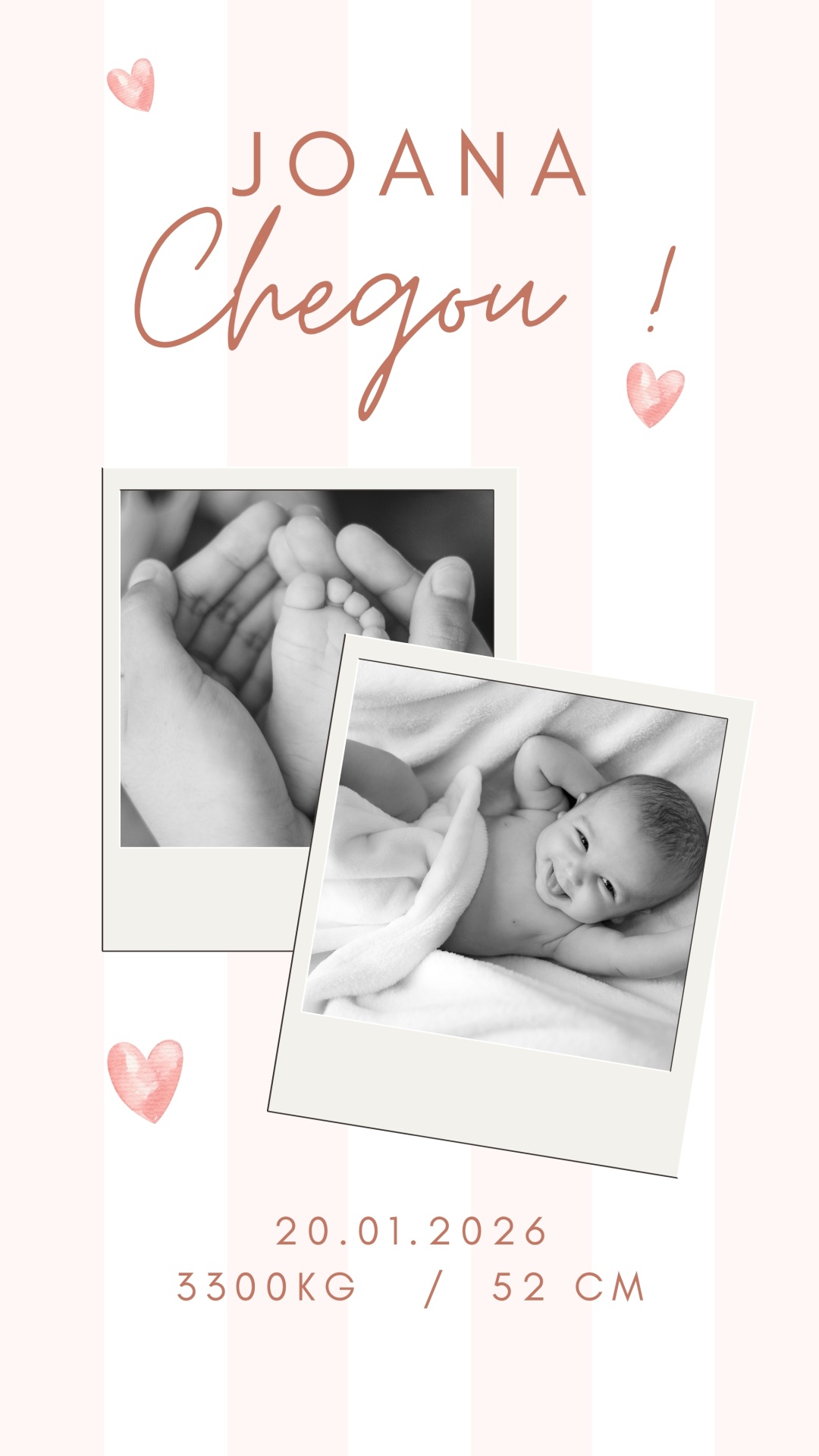 Criamos cartões digitais delicados e cheios de ternura, personalizados com nome e mensagem, perfeitos para anunciar a chegada de um bebé de forma única e inesquecível.