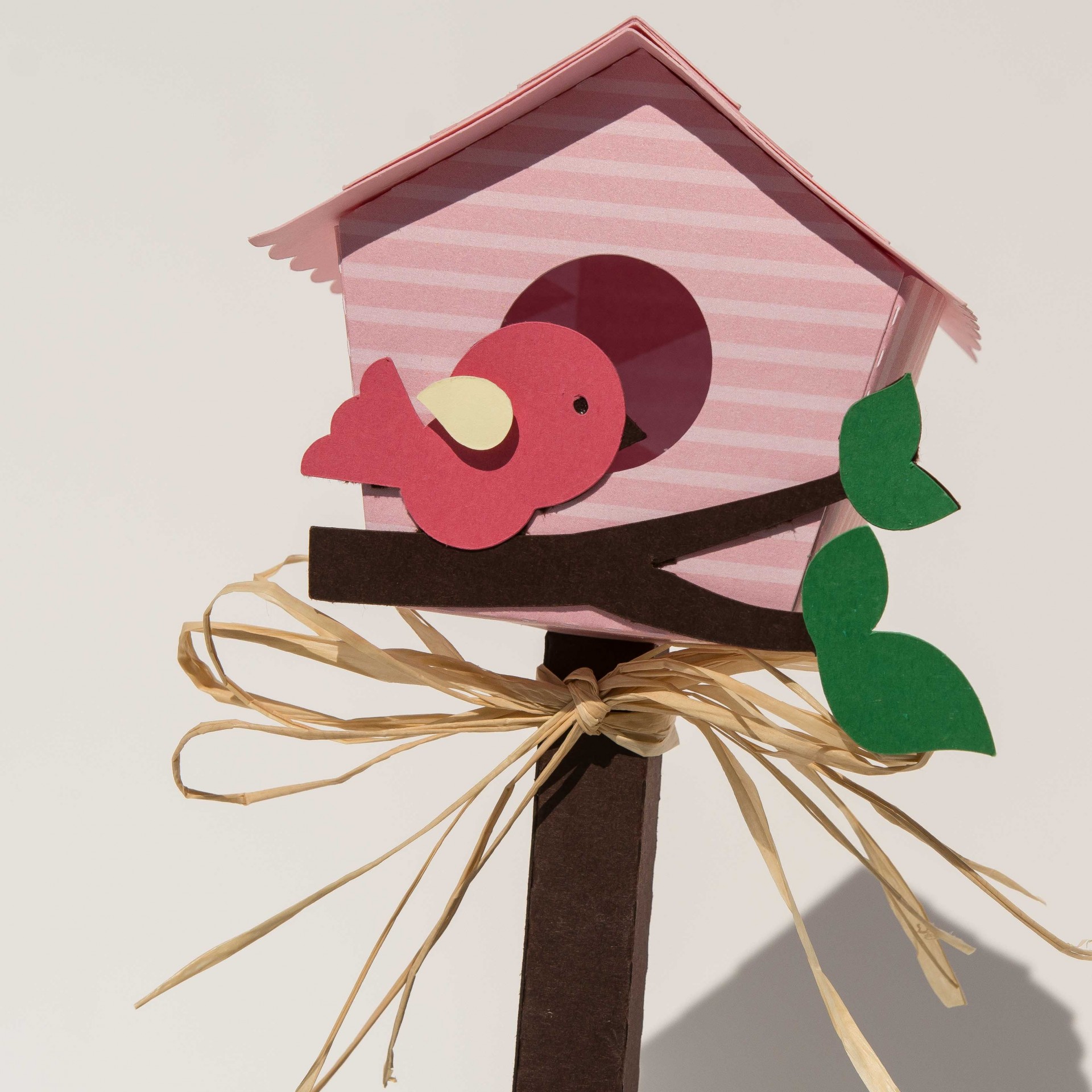 Casa de passarinho 3D, feita em cartolinas 250/ 280 gramas.