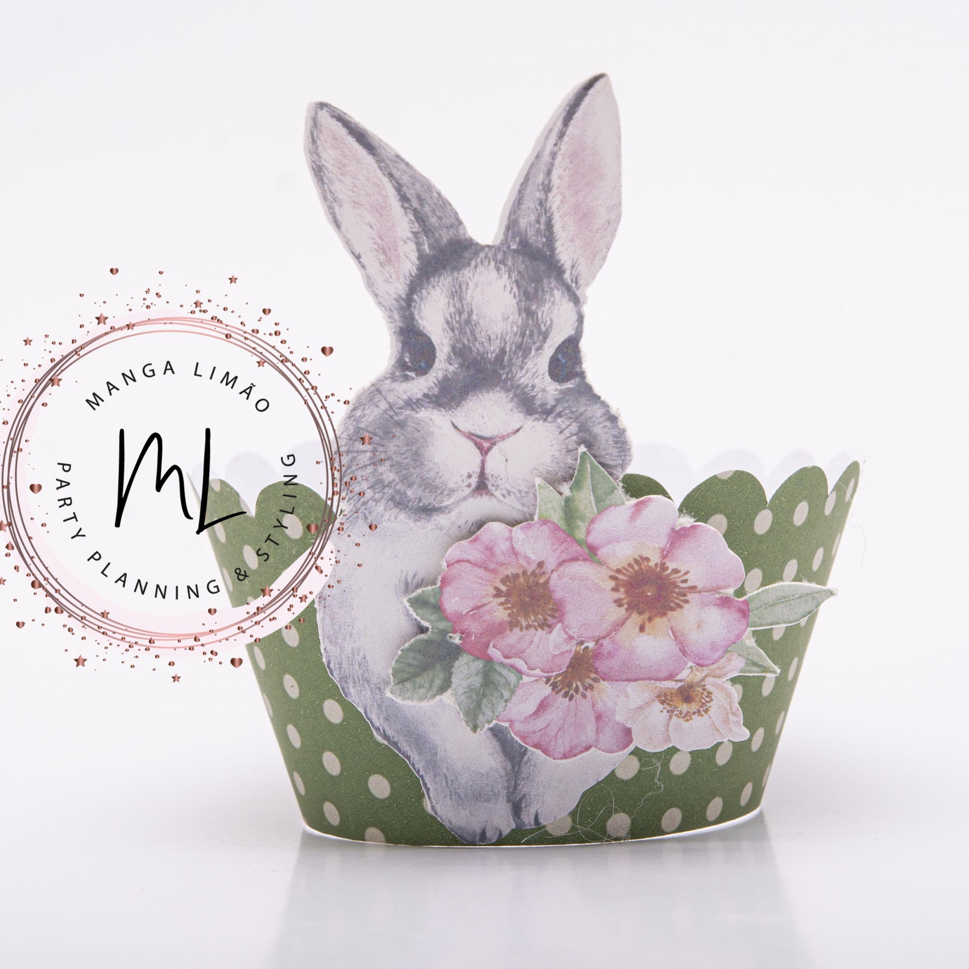 Cinta para cupcake ou pequenos bolos, com a coelhinha AMORA.