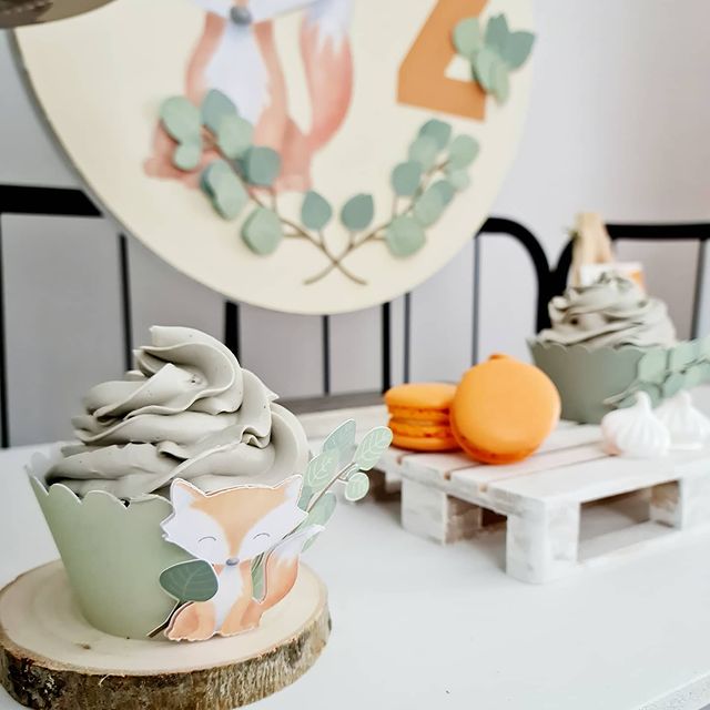 Cinta cupcake com efeito 2D conjunto de 6 unidades com raposa