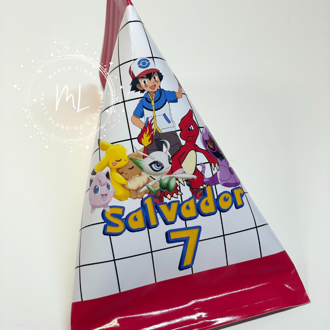 Embalagem caramelos de fruta Pokémon com formato triangular, personalizável.