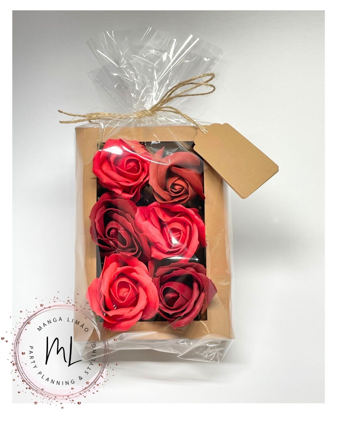 Embalagem com 6 Rosas de Sabão Vermelhas - Personalizável com Tag