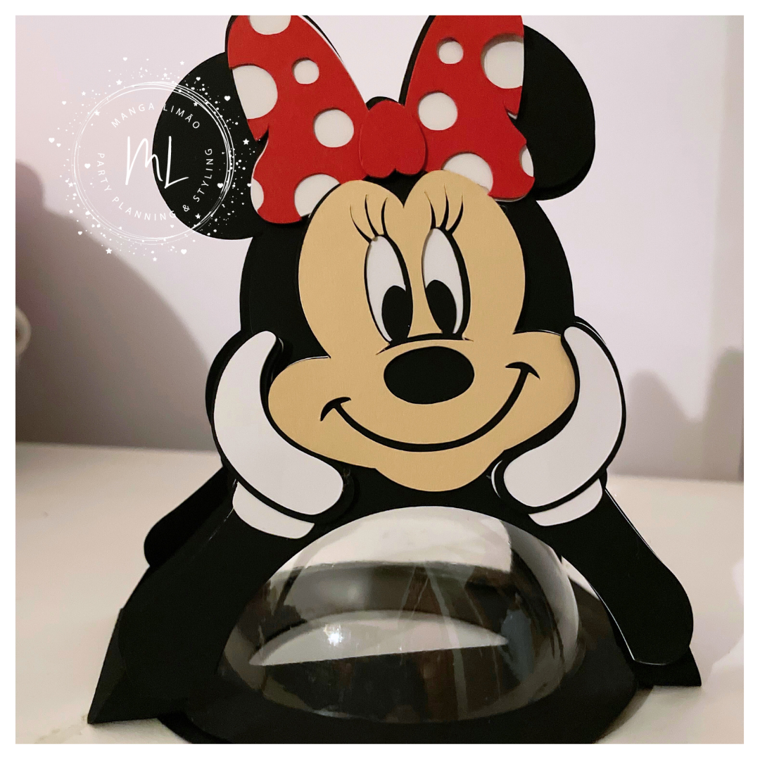 Surpreenda com a magia da Disney! Esta adorável embalagem em forma de Mickey e Minnie é perfeita para festas, lembranças ou presentes especiais.