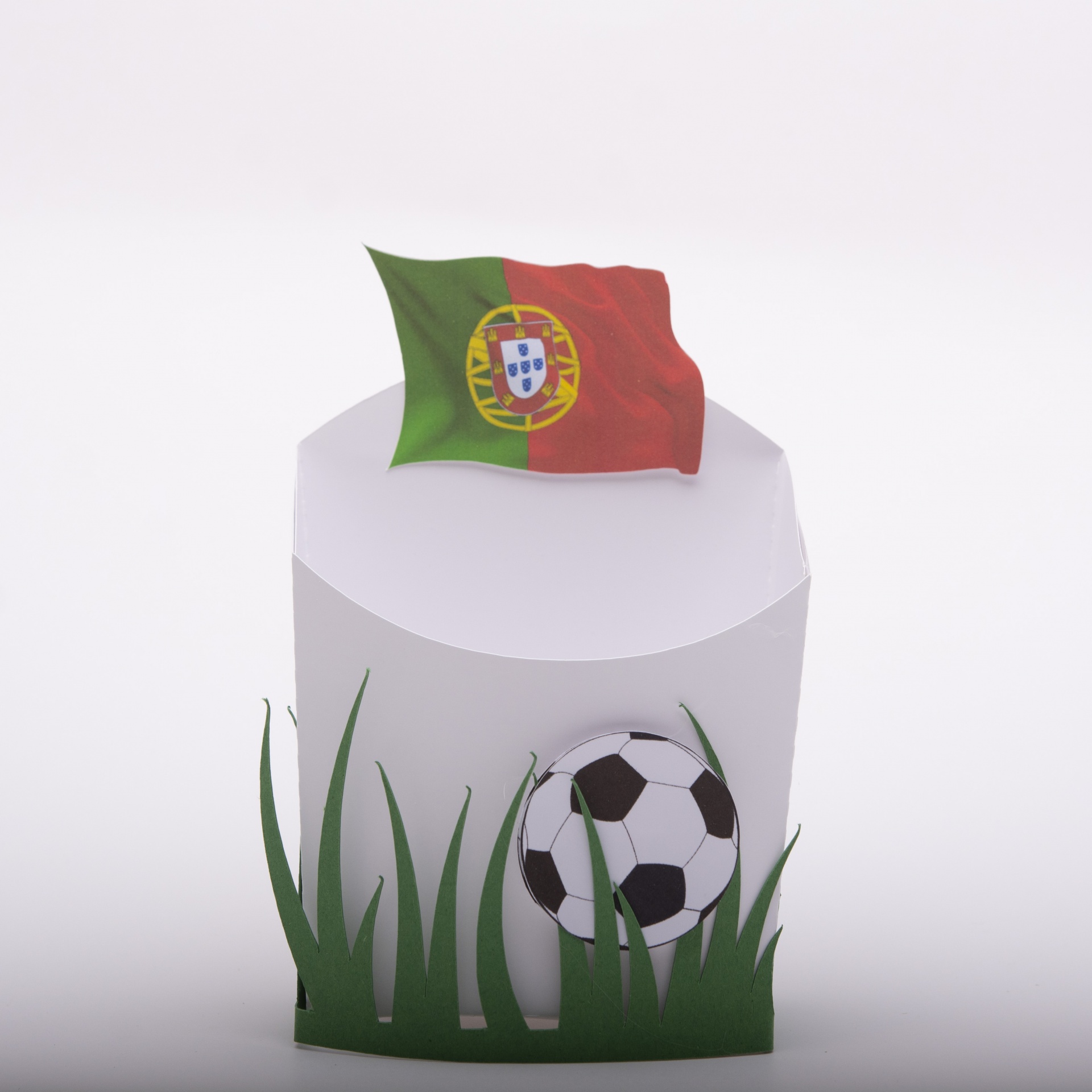 Pode optar pelas suas embalagens com bandeira de Portugal ou apenas com a relva e bola de futebol. Estas embalagens têm efeito 2D