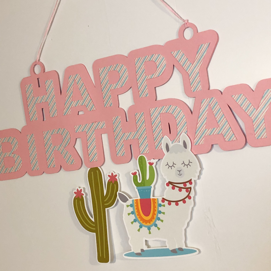 Esta faixa vem com uma fita de papel para pendurar, medindo ao todo cerca de 57 x 45 cm.