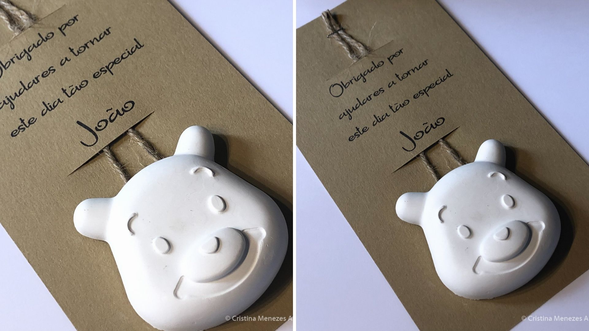 Esta peça em gesso vem num cartão que pode ser personalizado com a frase que desejar.