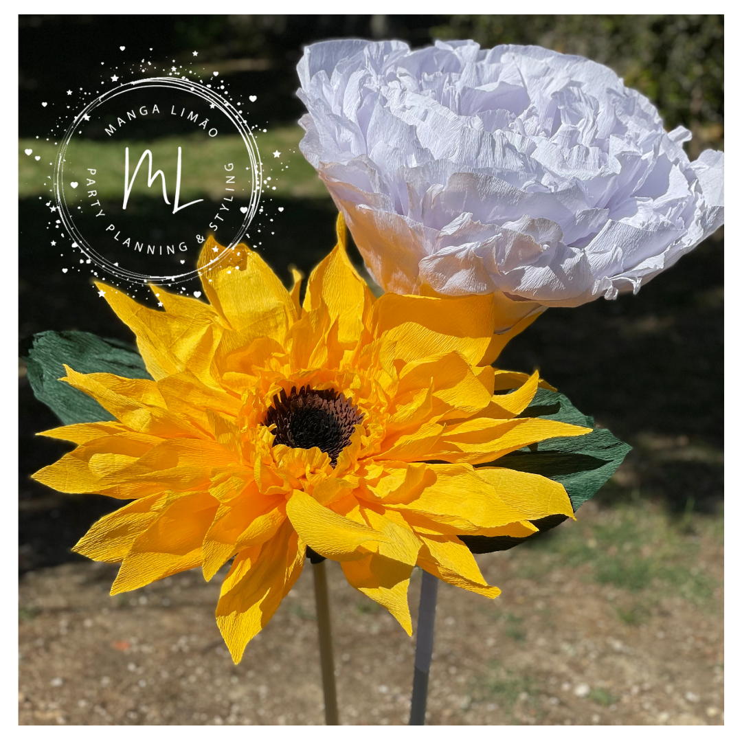 Transforme qualquer espaço com um toque vibrante e colorido. Os nossos girassóis gigantes de papel são perfeitos para trazer uma sensação de verão e calor ao seu evento ou ambiente. Seja para uma decoração permanente ou temporária, esses girassóis prometem encantar e impressionar.