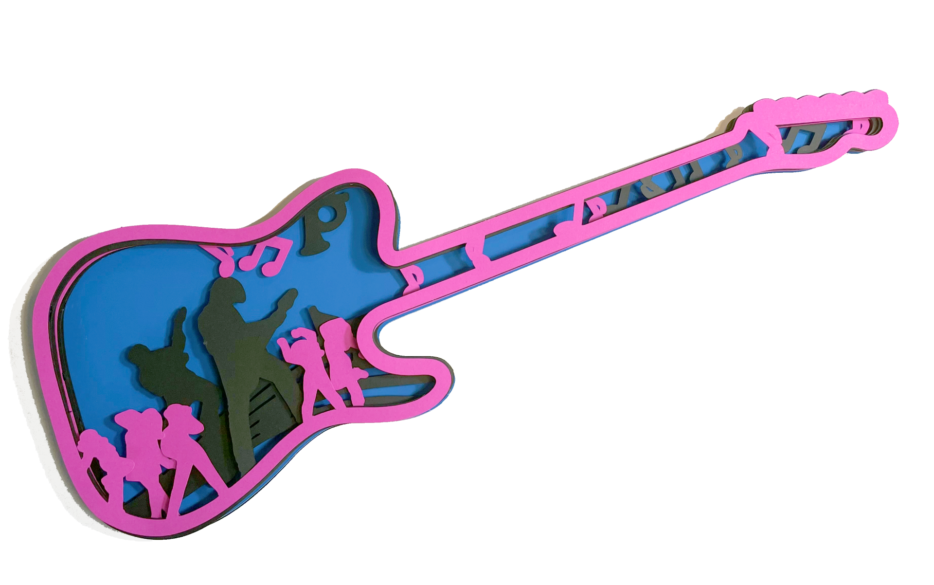 Guitarra feita em camadas de papel, ideal para decoração de festa com o tema musica ou tik tok.