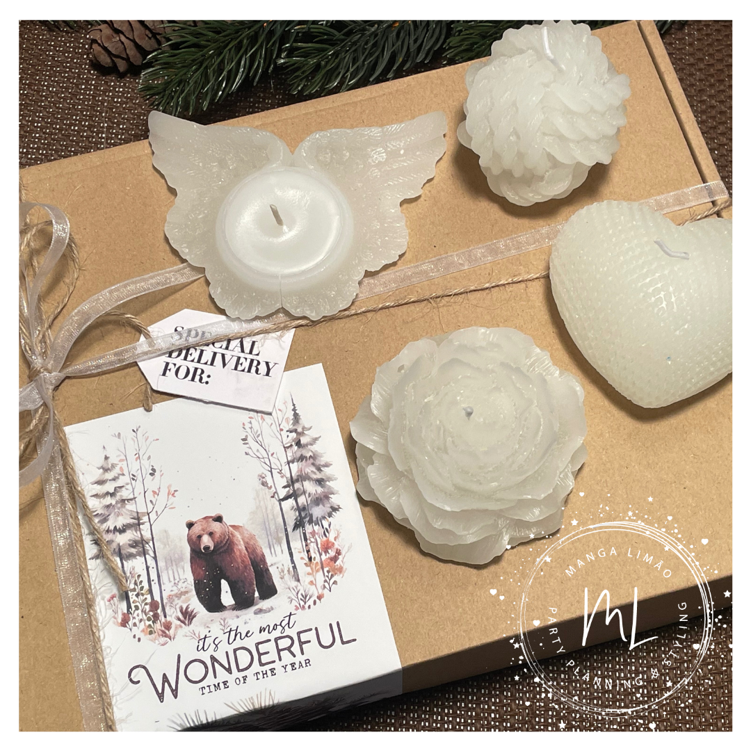Caixa com 4 velas aromáticas, com um suave aroma.