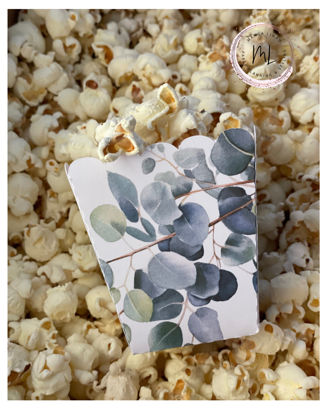 Adicione charme e frescura às suas festas com este pack de 8 copos de pipocas com design de eucalipto. Com um visual natural, delicado e elegante, estes copos são ideais para batizados, comunhões, festas de aniversário, casamentos ou eventos com inspiração boho e rústica.