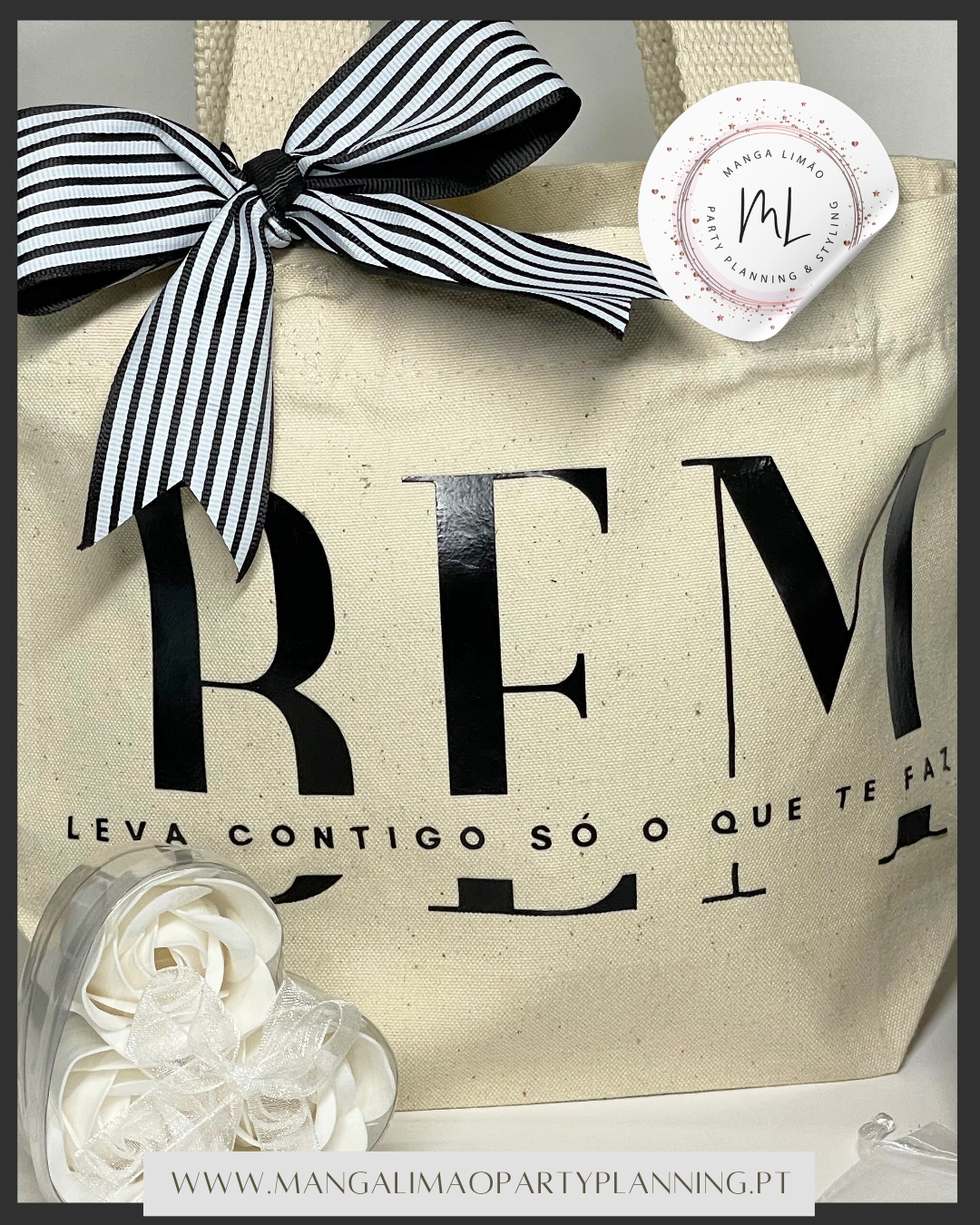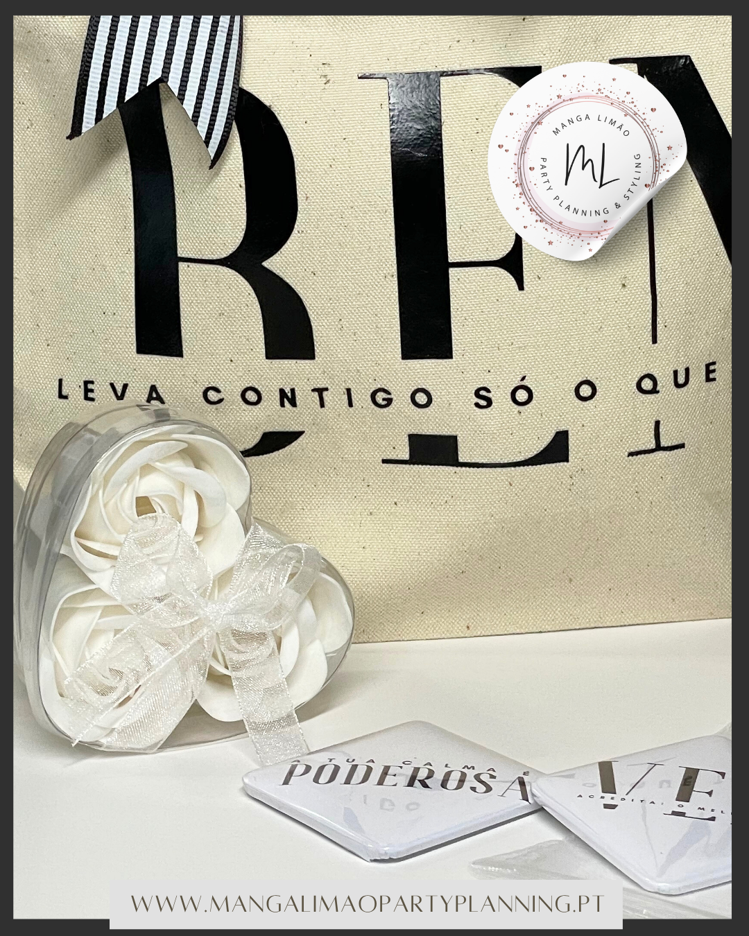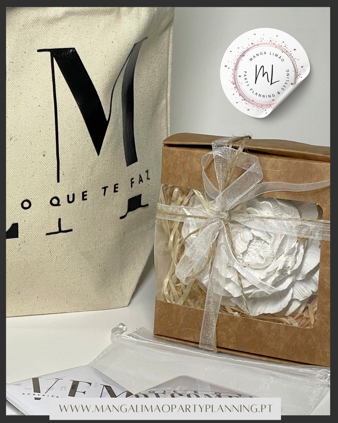 Pack Inspiração – caixa oferta personalizada com tote bag, flor perfumada e ímans com frases inspiradoras