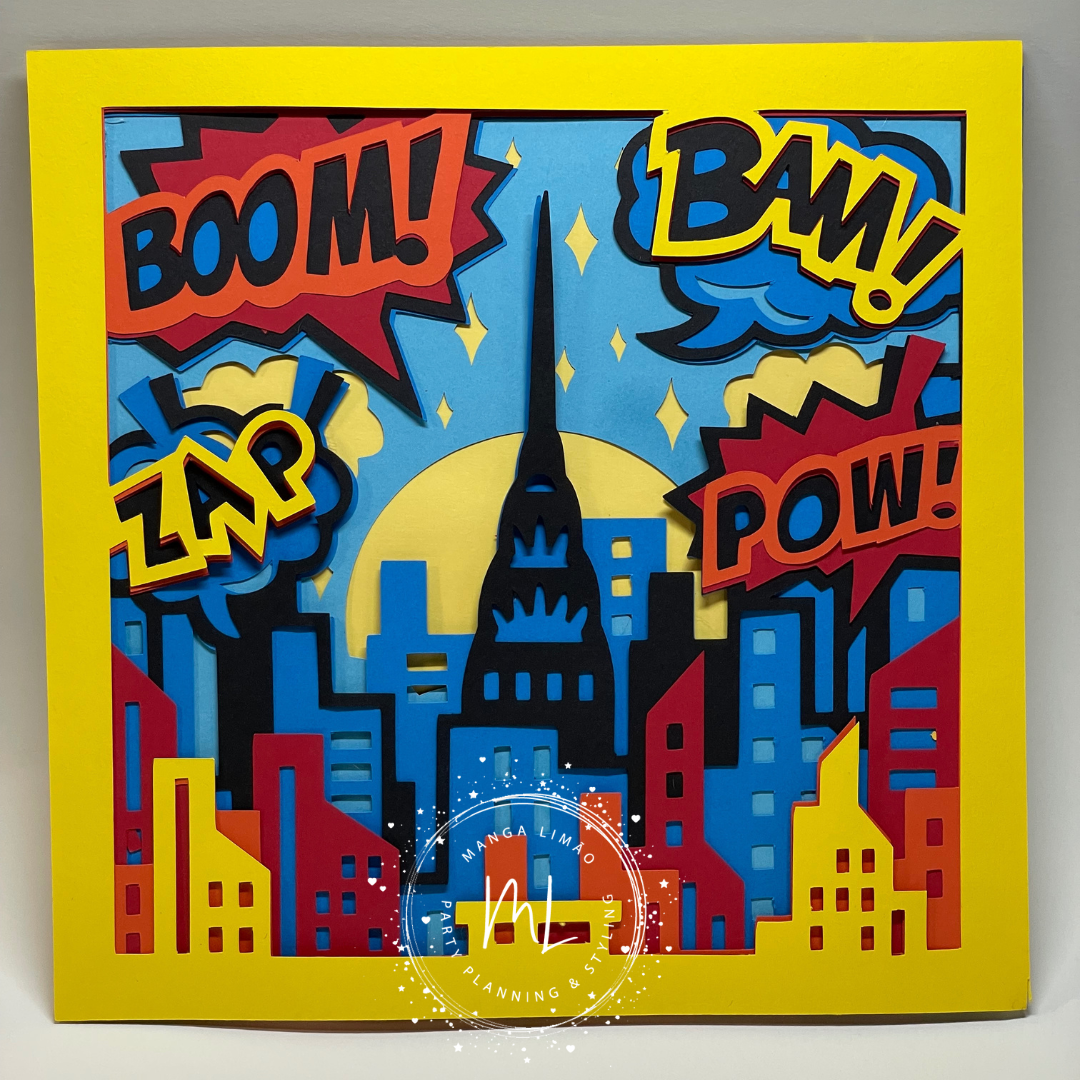 Quadro com efeito 2D, criado para a ajudar na decoração de festas com o tema Super Heróis.