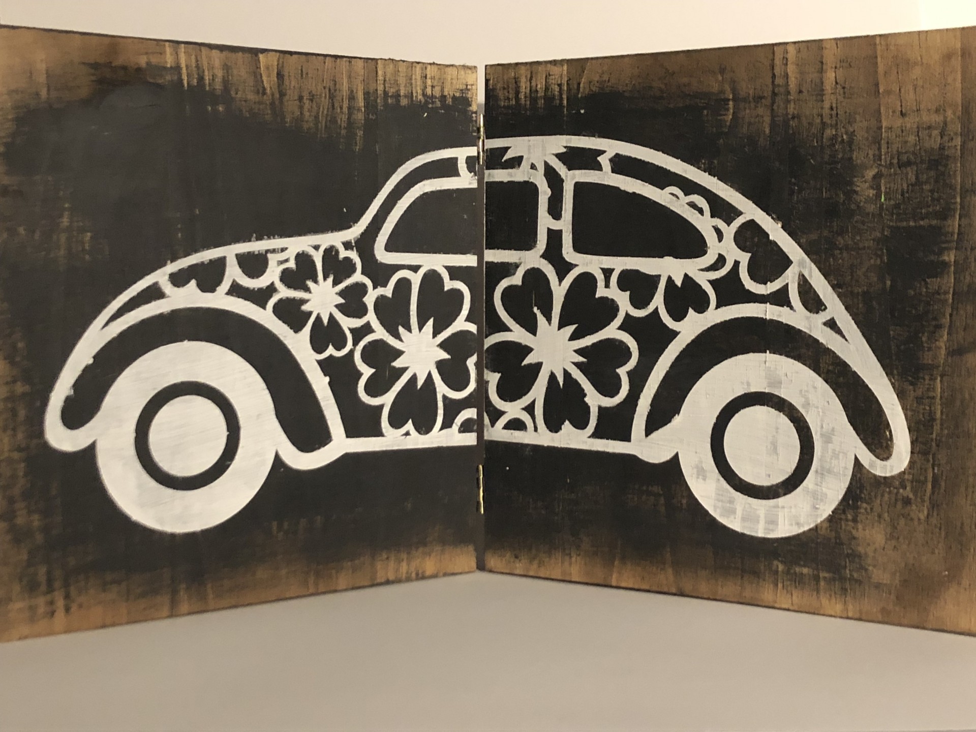 Quadro de madeira duplo com carro