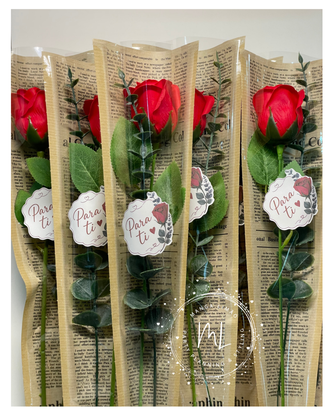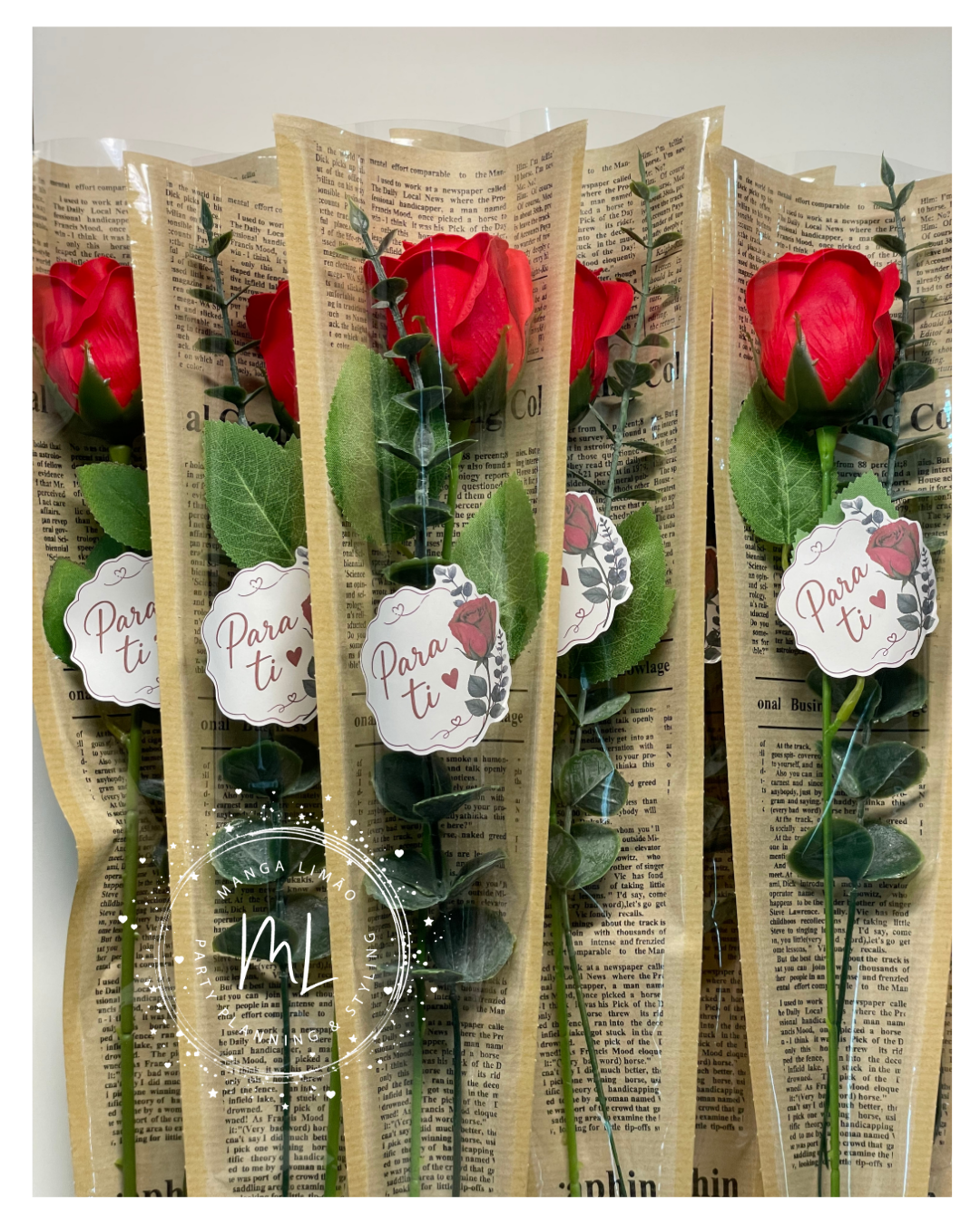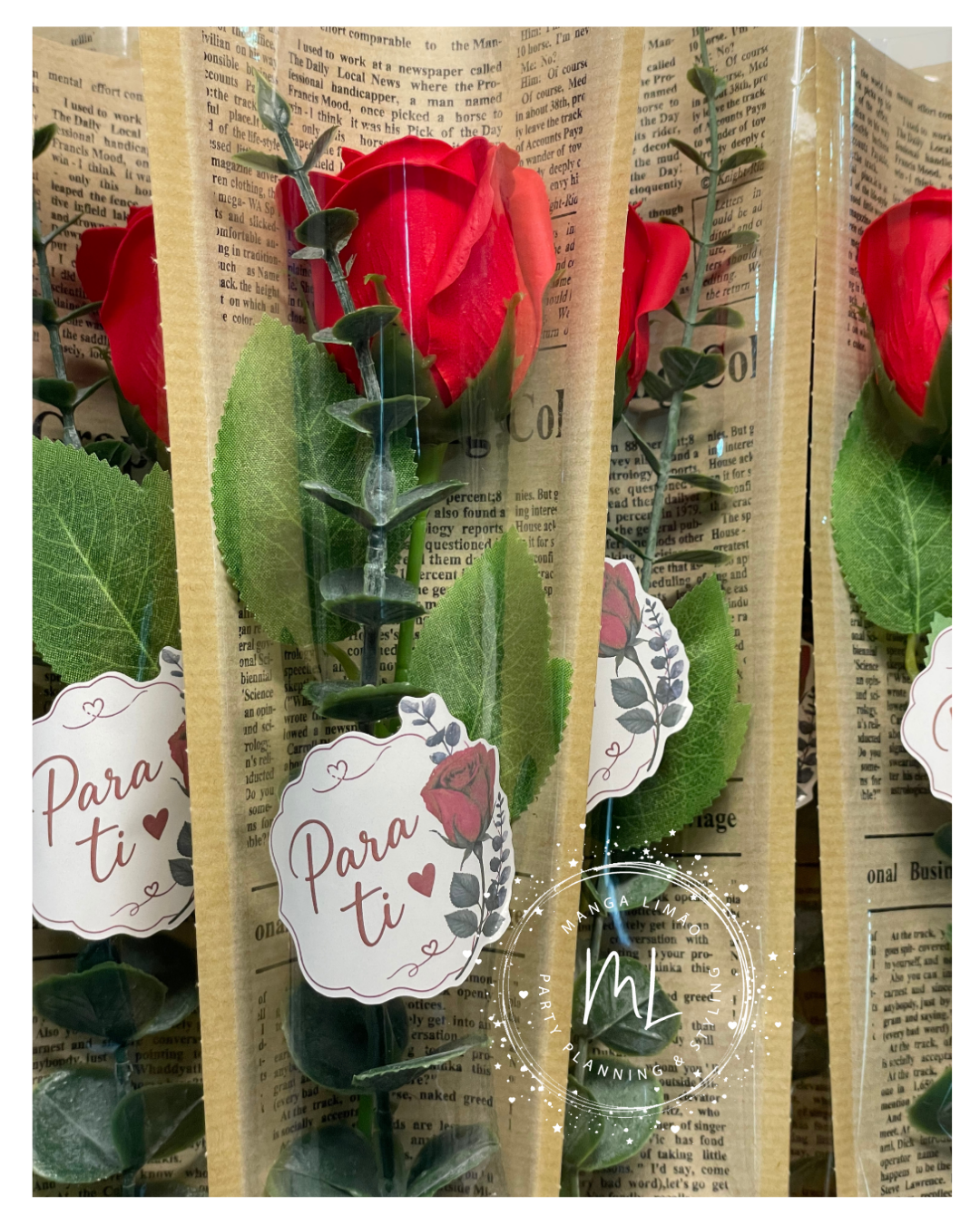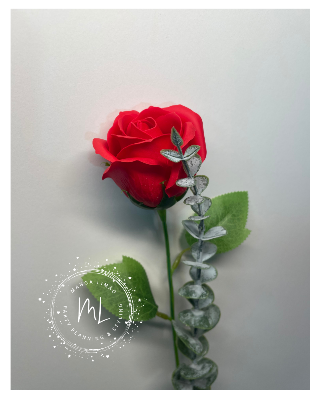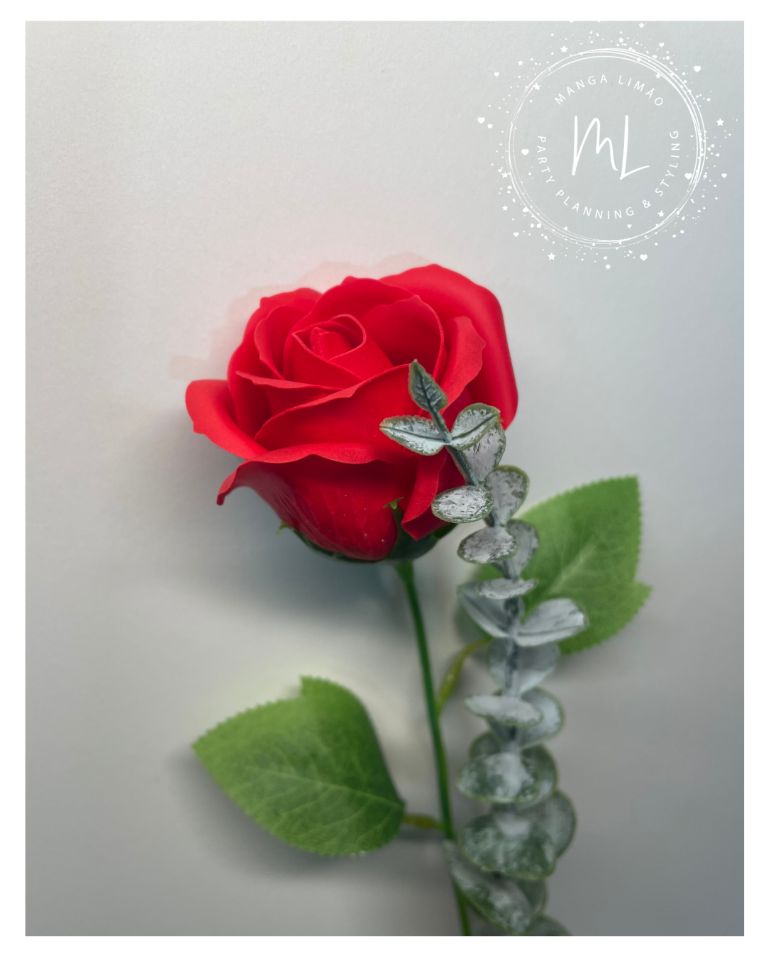 Rosa de Sabão Vermelha com Verdura Artificial – Lembrança Exclusiva Manga Limão com Autocolante “Para Ti”
