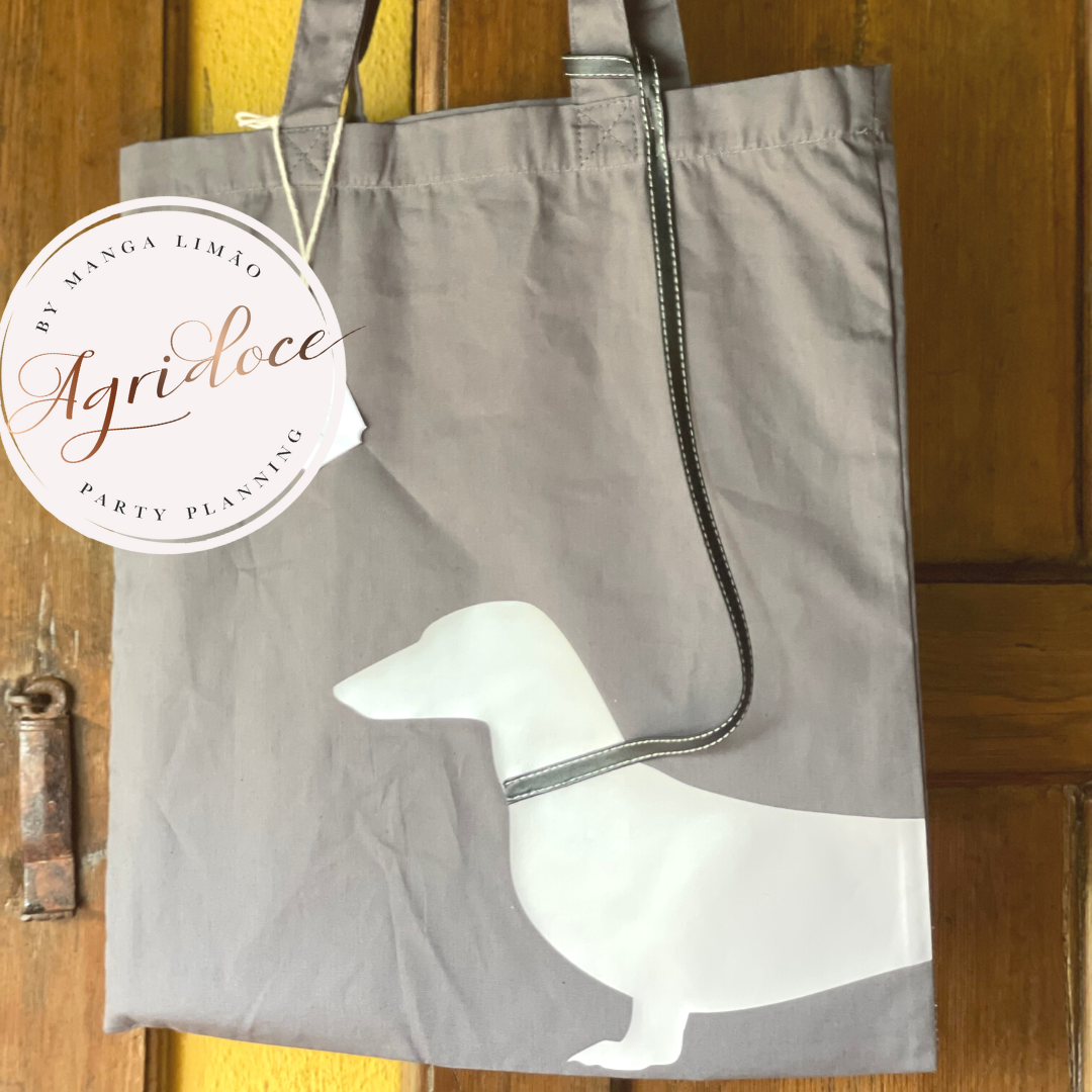 Saco de pano com aplicação em vinil termocolante e trela em ecopele. Uma boa alternativa aos sacos plásticos.