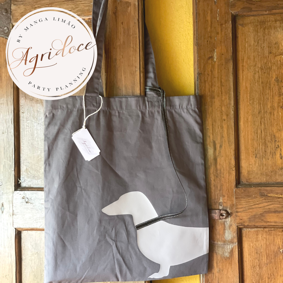 Cada Saco mede cerca de 38x42. Este saco é uma boa alternativa aos sacos plasticos. 100% algodão cinzento escuro.