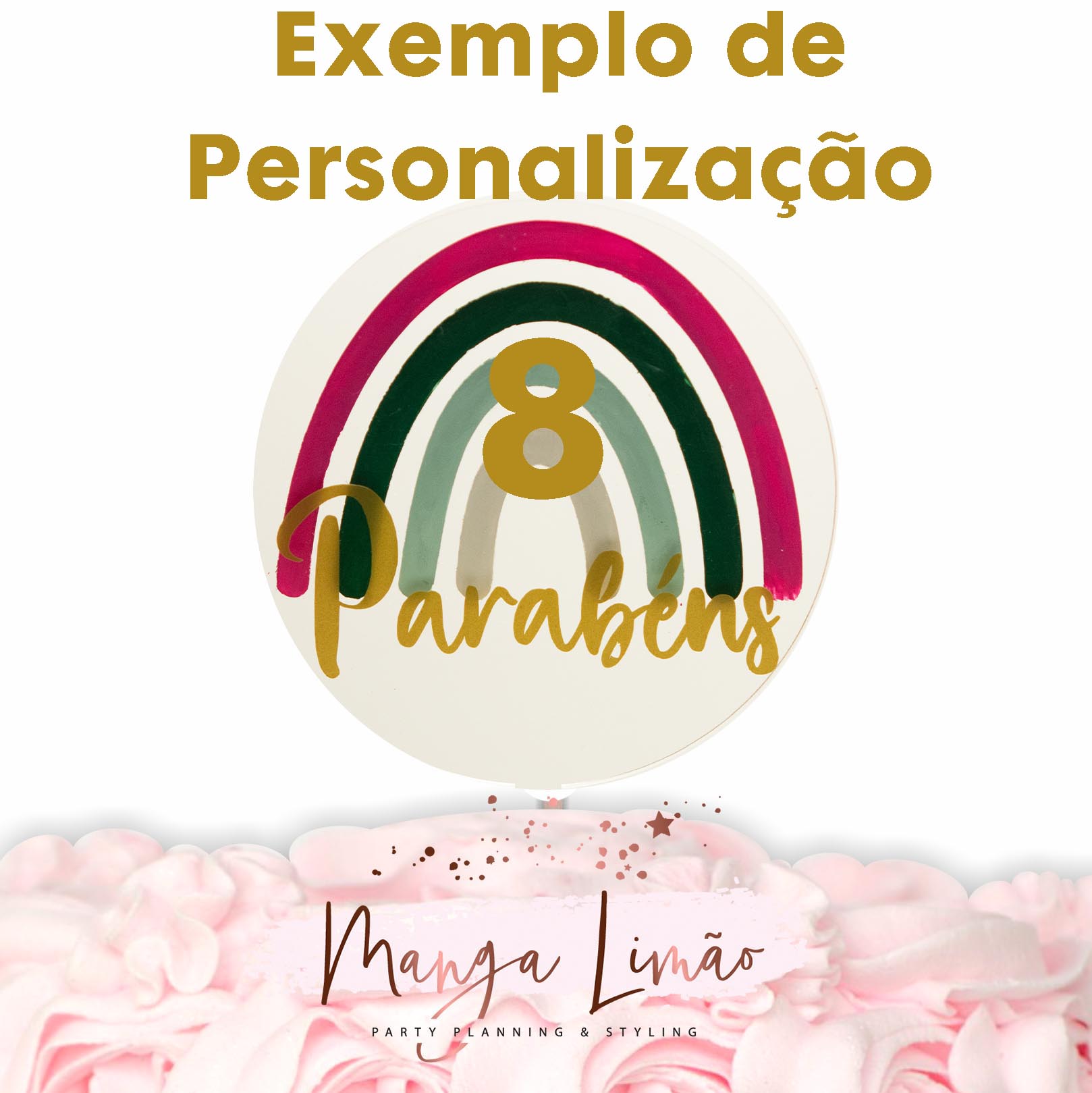 Este topo é personalizável, mediante uma aplicação em papel ou vinil. Se optar pelo seu topo personalizado, por favor indique-nos a personalização pretendida nas observações.
