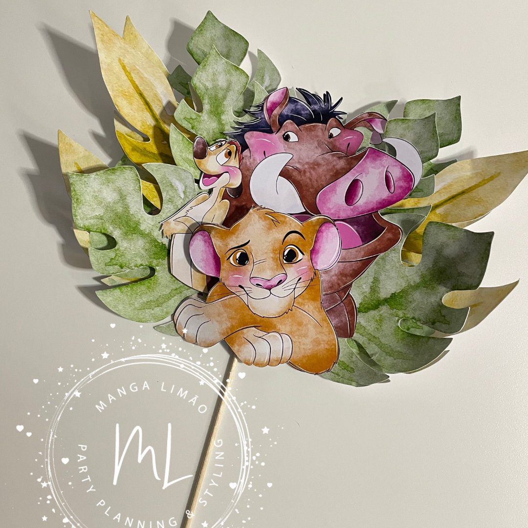 Topo de bolo com efeito 2D com o tema Rei Leão.