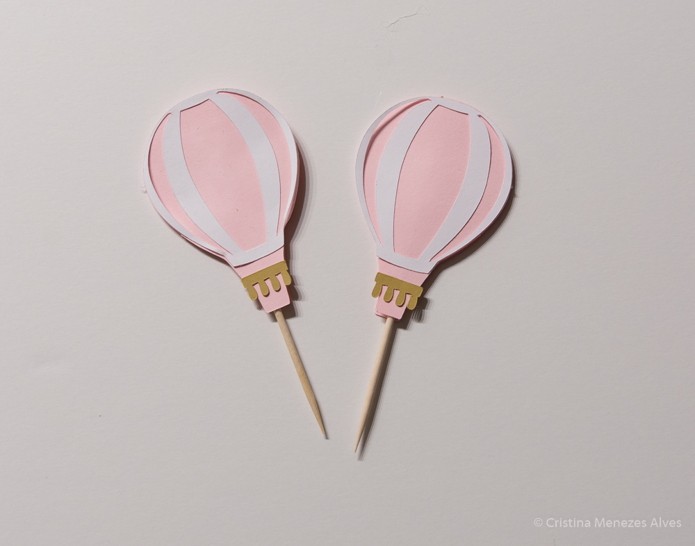 Topos de bolo com o tema Balão de ar Quente vendidos em Packs de 12 unidades